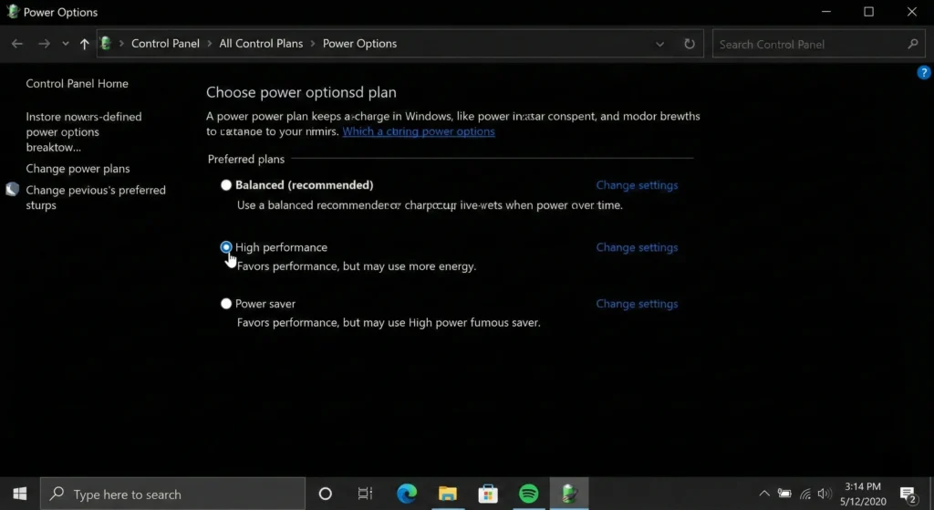- Select “High Performance” (or “Ultimate Performance” if available)