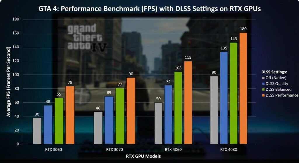 GTA 4 RTX Remix performance varies significantly based on your hardware. At native 4K, expect around 21-23 FPS even on an RTX 5090. With DLSS 4 Quality mode, you’ll hit 34-40 FPS, and Frame Generation pushes it to 64-76 FPS. Multi-Frame Generation can reach 100-120 FPS, which makes the game actually playable at higher resolutions.