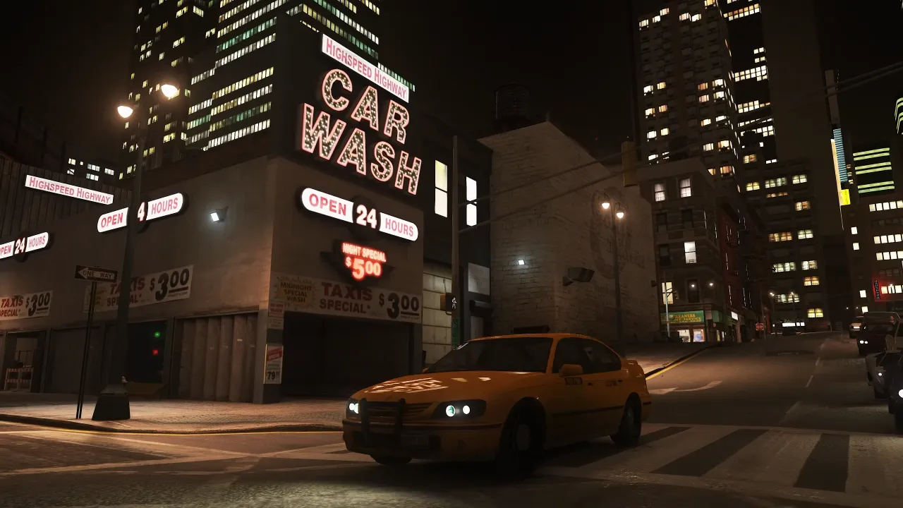 The difference isn’t subtle. Night driving through Algonquin with neon signs reflecting off wet roads, or watching the sunrise over the Broker Bridge — these moments feel like a completely different game.