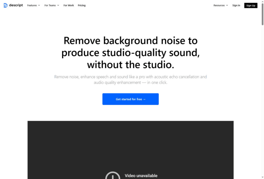Descript is more than just a repair tool; it is a full audio/video editor that works like a word processor. Their “Studio Sound” feature is a toggle that instantly regenerates voice quality.